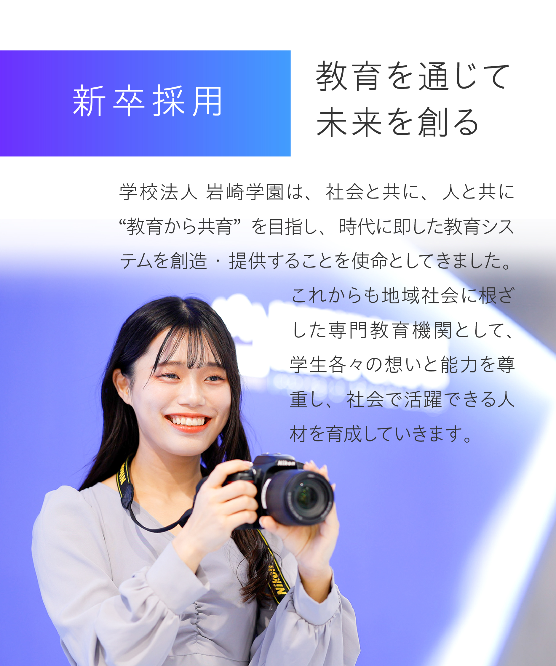 岩崎学園では、発想力を活かし、柔軟に変化することを共に楽しめる方を募集しています。